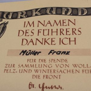 Attestato per medaglia Kyffhauser – Bundes 1914/18