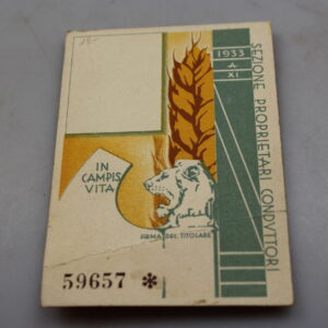 Tessera Confederazione Nazionale Sindacati Fascisti Professionisti & Artisti XII°
