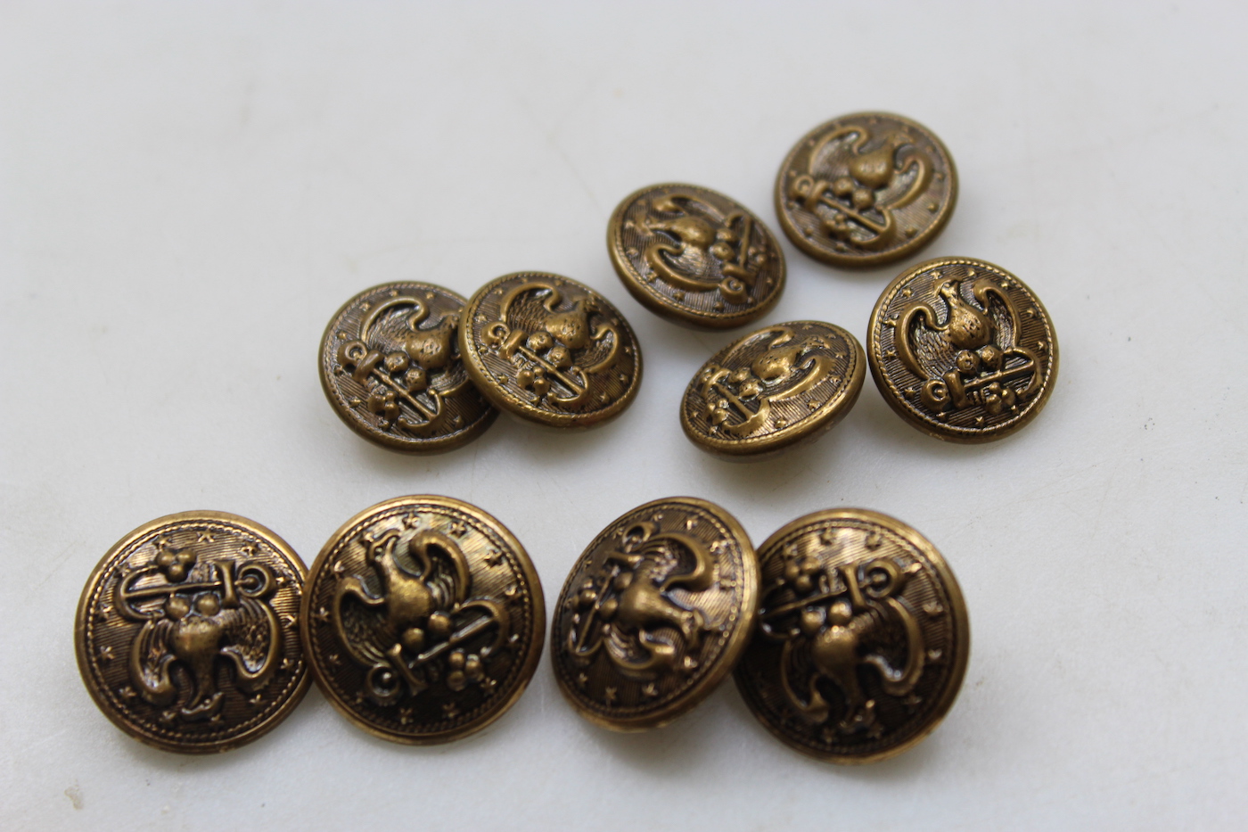 # 10 bottoni da giacca dei Pompieri Francesi anni 30′. Usati, buono stato di conservazione, bella patina.