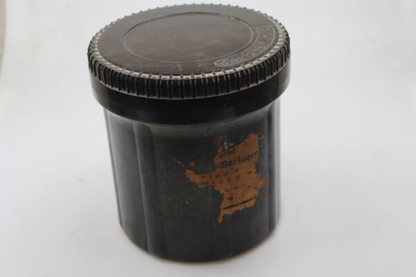 Contenitore in bachelite per carica supplementare per obici da campo pesanti 15 cm sFH 13 e 15 cm sFH 18, marcato con produttore e data 1943, presente resti etichetta in carta. Buono stato di conservazione.