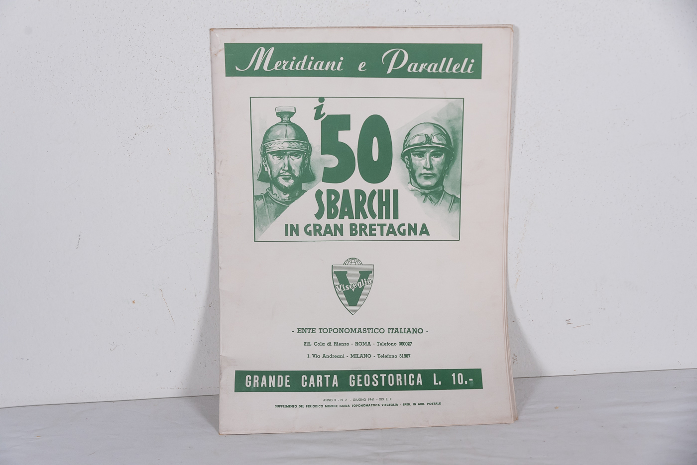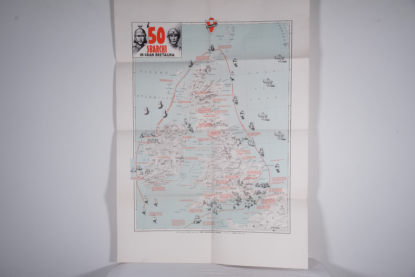 “50 sbarchi in Gran Bretagna” – Grande carta geostorica. Buono stato di conservazione.