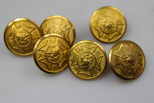 N°6 bottoni anni 30′,per giacche dei veterani della Prima Guerra Mondiale. Usati in buono stato di conservazione.