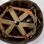 Elmetto M1 Americano a ganci mobili, con spacco posteriore sul bordo, produzione 1944/45, completo di liner con accessori, escluso sottogola in pelle, completo di rete mimetica. Molto buono lo stato di conservazione dei due pezzi.