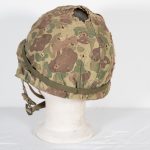 Interessante M1 a ganci mobili con spacco anteriore, ricondizonato Corea in colorazione verde scuro, completo di sottogola e completo di liner anche questo in configurazione Corea con cinghiaggi spigati in colorazione verde scuro ,completo di telino USMC di terzo modello anni 50′ / Corea ,con fregio frontale riportato. Il tutto usato in buono stato di conservazione, il telino mimetico con qualche rottura dovuta all’uso.
