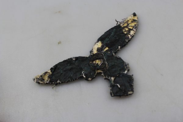 Aquila da giacca da Ufficiale della Luftwaffe, variante di primo tipo. Usata, tolta da giacca, lievemente danneggiata sull’angolo destro superiore. Bella patina.
