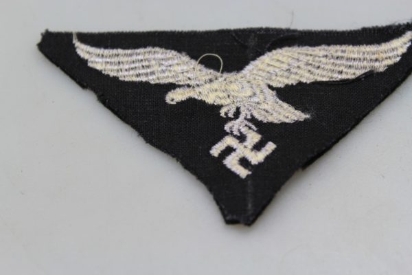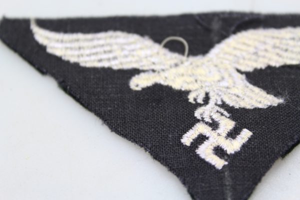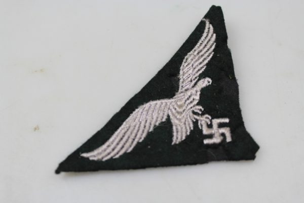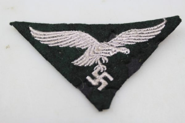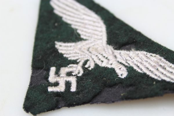 Interessante aquila della Luftwaffe, ricamata in cotone su base verde loden, probabilmente usata dalla Forst della Luftwaffe. Buono stato di conservazione, ancora da sagomare, fondo di magazzino.