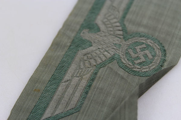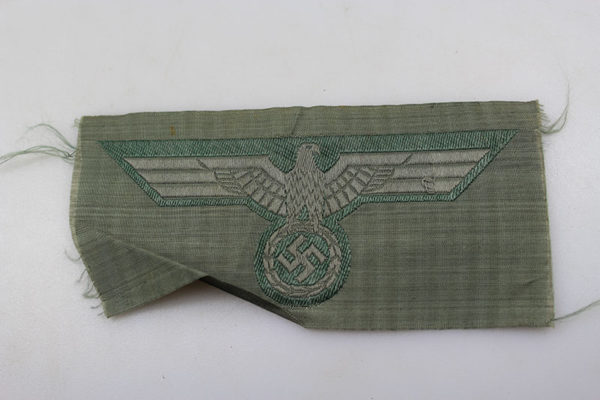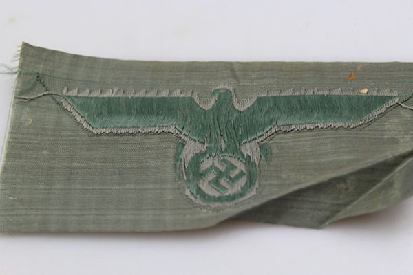 Aquila da petto per giacca truppa Heer, produzione Be-Vo a “bassa visibilità”. Mint condition, tagliata da rotolo, fondo di magazzino.