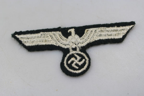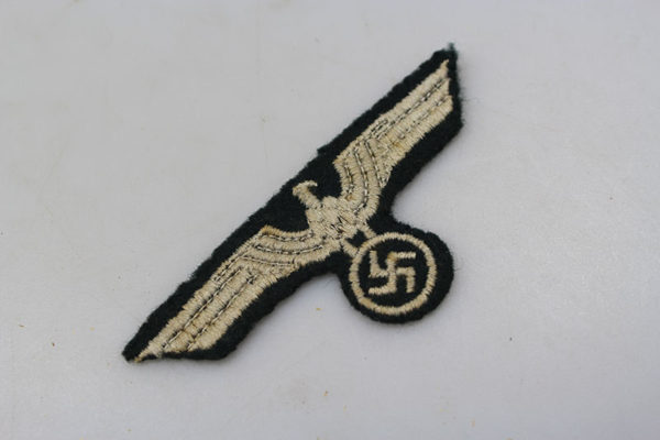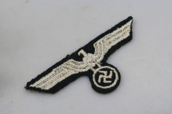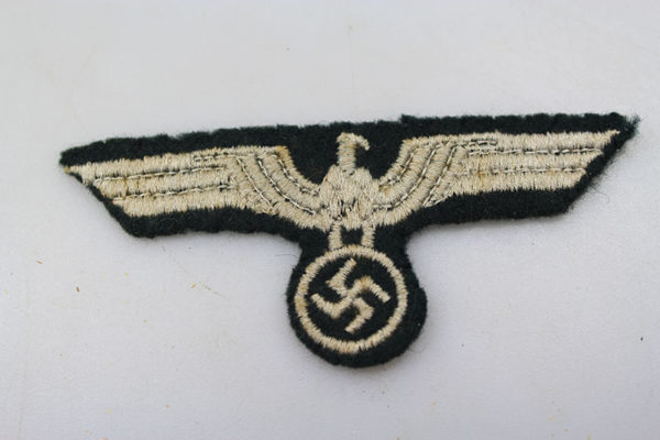 Aquila da giacca truppa Heer, ricamata con cotone grigio su fondo verde loden. Usata, tolta da giacca in buono stato di conservazione.