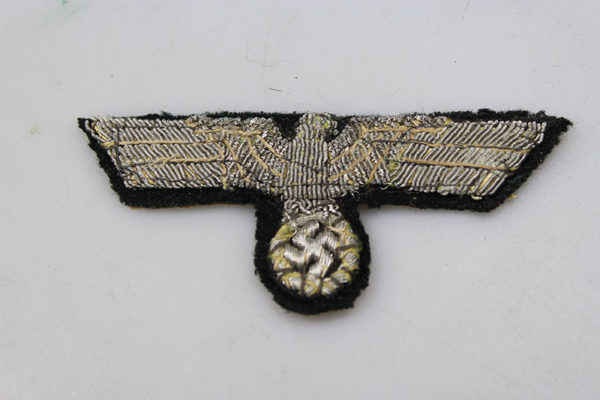 Aquila ricamata per giacca da Ufficiale Heer. Usata, tolta da giacca, bella patina.