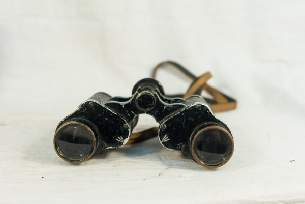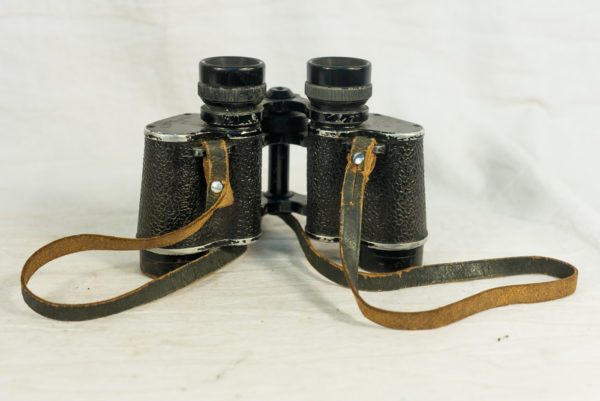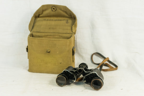 Binocolo 6×32 Inglese della Seconda Guerra Mondiale, marcato con produttore e broad arrow, completo di custodia in canapa marcata con produttore, broad arrow e datata 1940. Buono stato di conservazione.