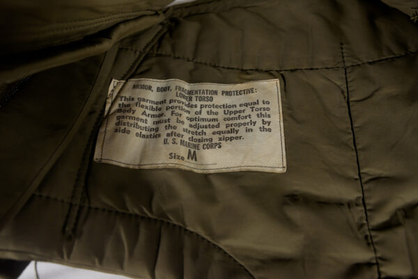 Antischegge “Lower Torso” USMC 1967, protezione per le “parti basse”, indossata soprattutto dagli elicotteristi in Vietnam. Taglia M. Usato, buono stato di conservazione.