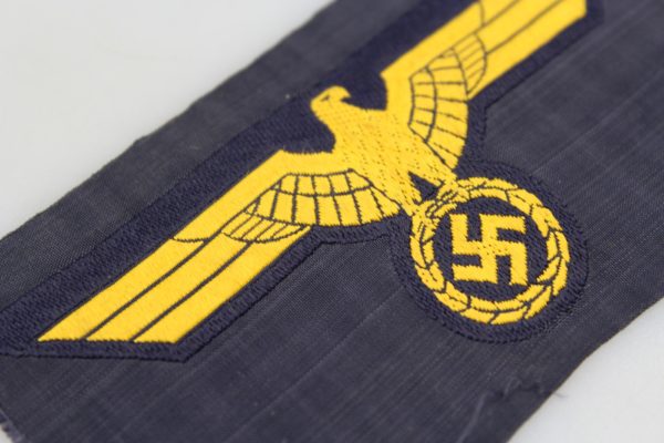 Aquila da petto per uniforme da truppa della Kriegsmarine, produzione Be-Vo. Mai usata, tagliata da rotolo.