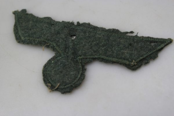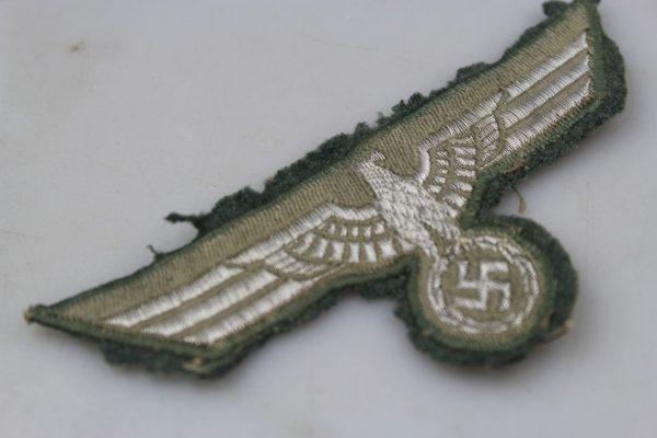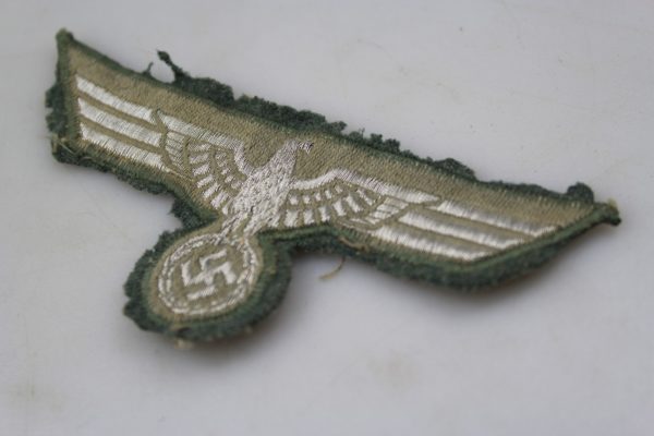 Aquila da petto da Ufficiale Heer, versione precoce, produttore Be-Vo “flat-wire”,cucita su supporto verde chiaro. Buono stato di conservazione.