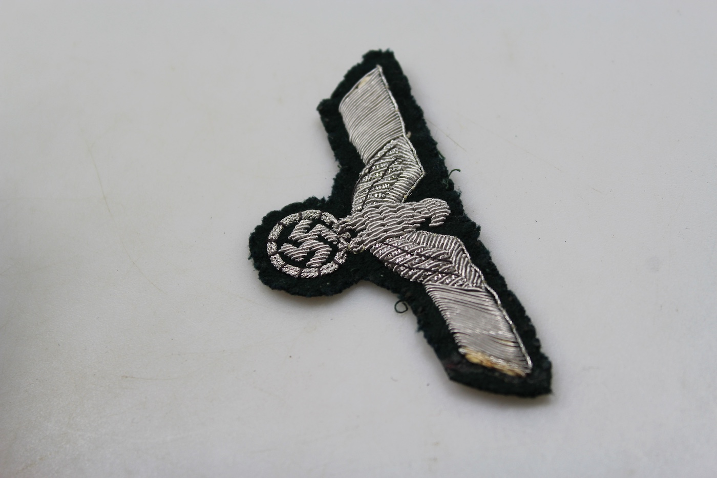 Aquila da petto per giacca da Ufficiale Heer della Seconda Guerra Mondiale, ricamata in canuttiglia. Usata in buono stato di conservazione e bella patina.