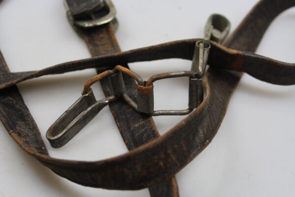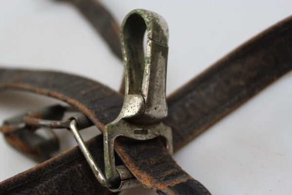 Attacchi con catenelle, versione in cuoio “da campo”, per sciabola da Ufficiale del Regio Esercito Italiano. Usato, buono stato di conservazione.