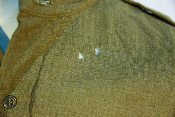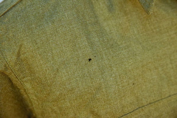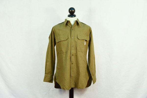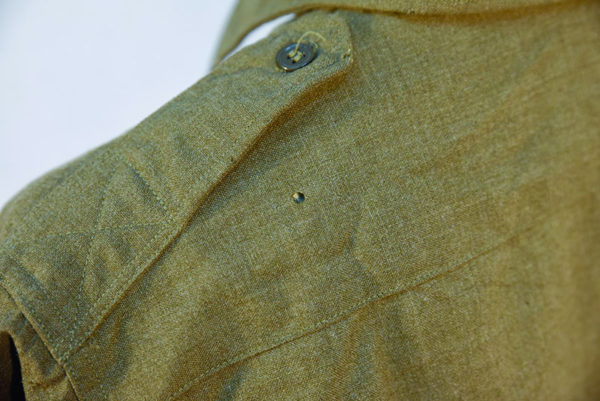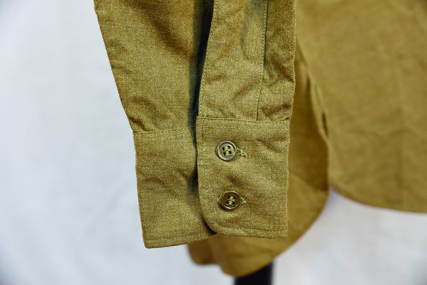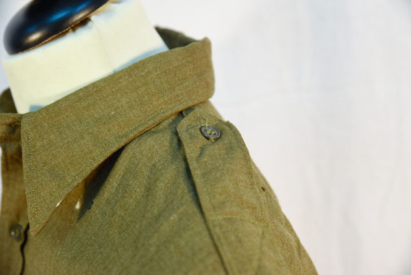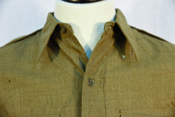 Camicia in flanella “mutard”,versione per Ufficiale, con spalline fisse. Usata in buono stato di conservazione, due piccoli buchi di tarma, vedi foto in dettaglio.