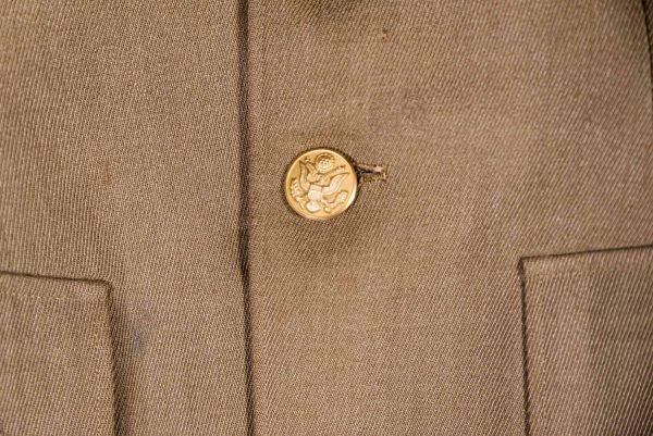 Interessante giacca da Sottotenente US Army di Fanteria degli anni 30′,completa dei suoi attributi e con patch di una “Scuola di Guerra” per Ufficiali, Fatta in taglio elegante con robusta stoffa tricotine in colorazione tipica di quel periodo, doppia etichetta interna. Usata, buono stato di conservazione. Vecchio biglietto da visita di una lavanderia, rinvenuto all’interno di una tasca.