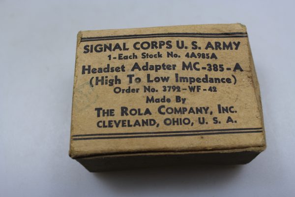 Signals Corps US Army. Scatola con Headset Adapter. Integra.mai aperta, buono stato di conservazione.