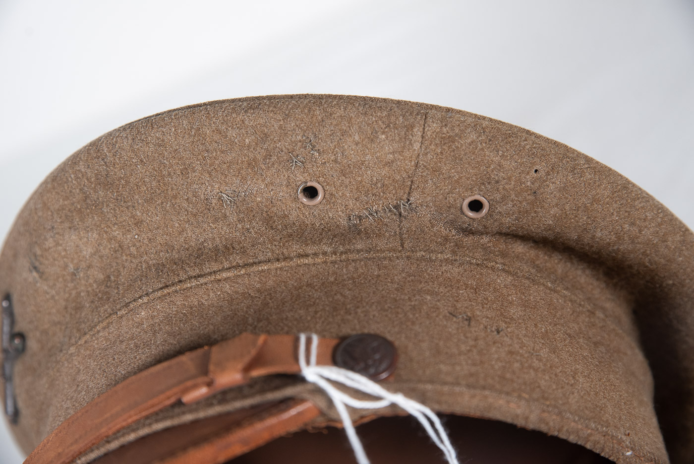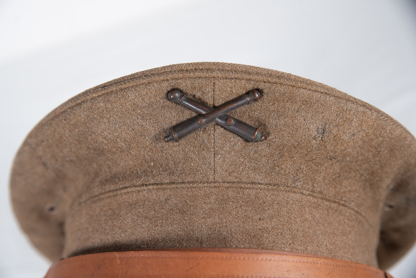 Berretto a visiera da Ufficiale US Army M.1912 prebellico, con fregio di Artiglieria, presente qualche piccola riparazione bene eseguita, vedi foto in dettaglio. Usato, buono stato di conservazione, bella forma.