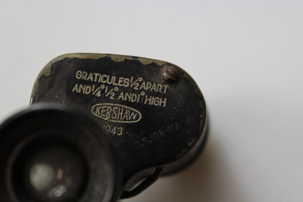 Bino Prism 6×30 Mk2 Inglese, produttore Kershaw datato 1943. Esternamente in buono stato di conservazione, lenti sporche da ripulire.