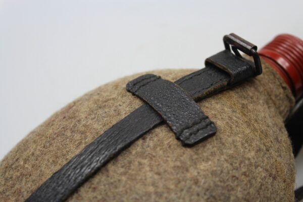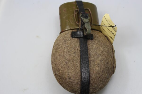 Ottima borraccia fatta in ferro e completa di gavettino entrambi verniciati. Fiasca marcata MN-44 e gavettino MN-43. Rivestita il feltro di lana e completa di cinghiaggi in cuoio. Perfetto lo stato di conservazione.