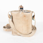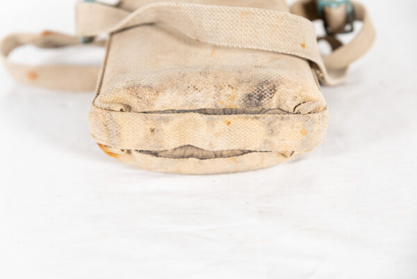 Tipica borraccia Inglese della Seconda Guerra Mondiale, fatta in ferro smaltato blu, completa di custodia e tracolla in canapa. Usata in buono stato di conservazione, piccola rottura nella parte superiore della canapa, vedi foto in dettaglio.