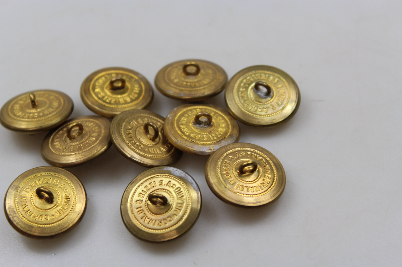 # 10 bottoni M.34 da 24 mm, per cappotto da Ufficiale di Artiglieria del Regio Esercito Italiano. Usati, buono stato di conservazione.