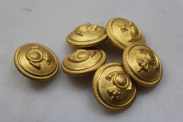 # 6 bottoni da 25 mm, dorati per cappotto da Ufficiale di Cavalleria del Regio Esercito Italiano nella Seconda Guerra Mondiale. Usati, buono stato di conservazione.