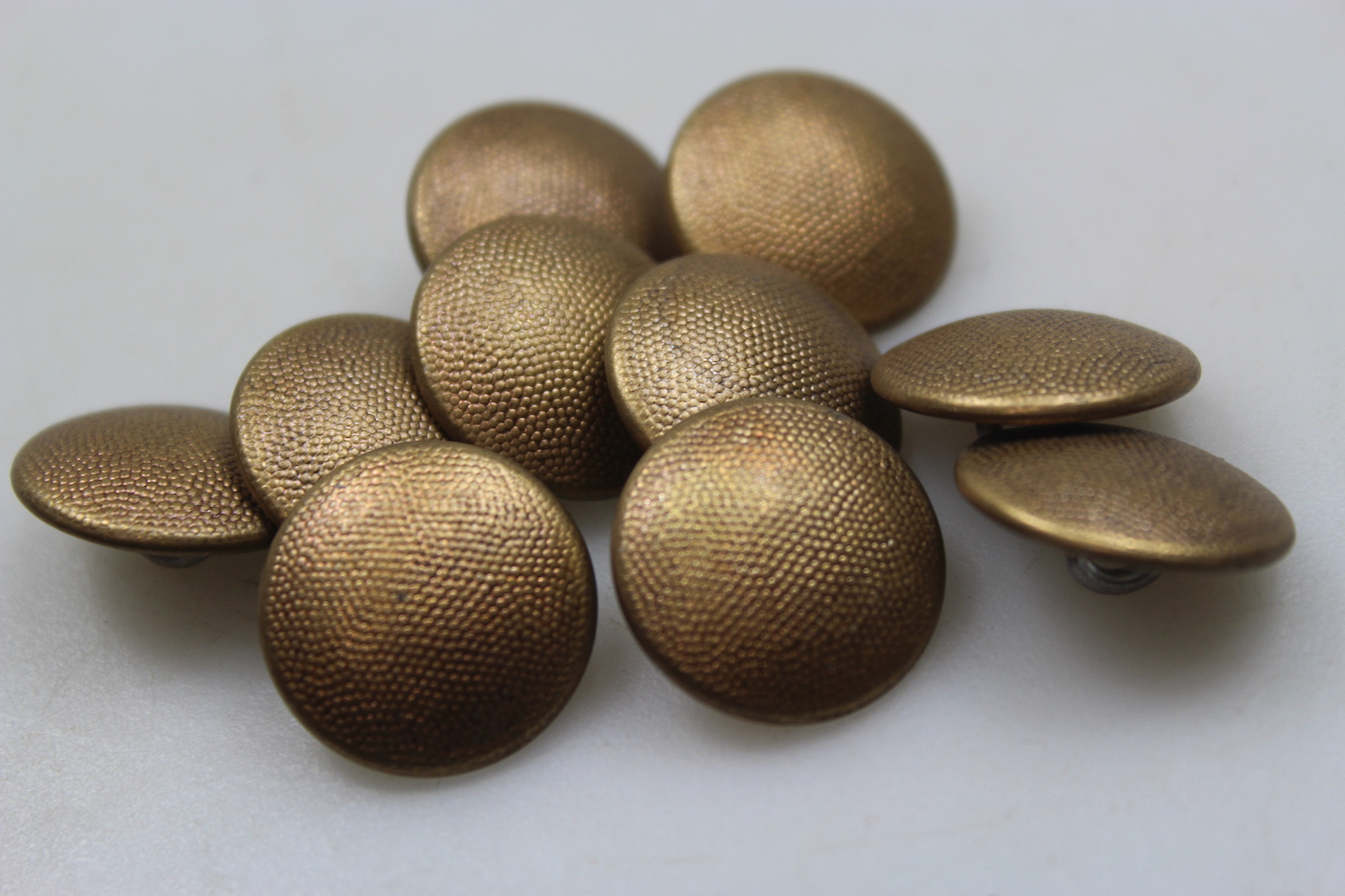 # 10 bottoni dorati, diametro mm 19, produttore Overhoff & Cie, perfettamente “matching”. Buono stato di conservazione.