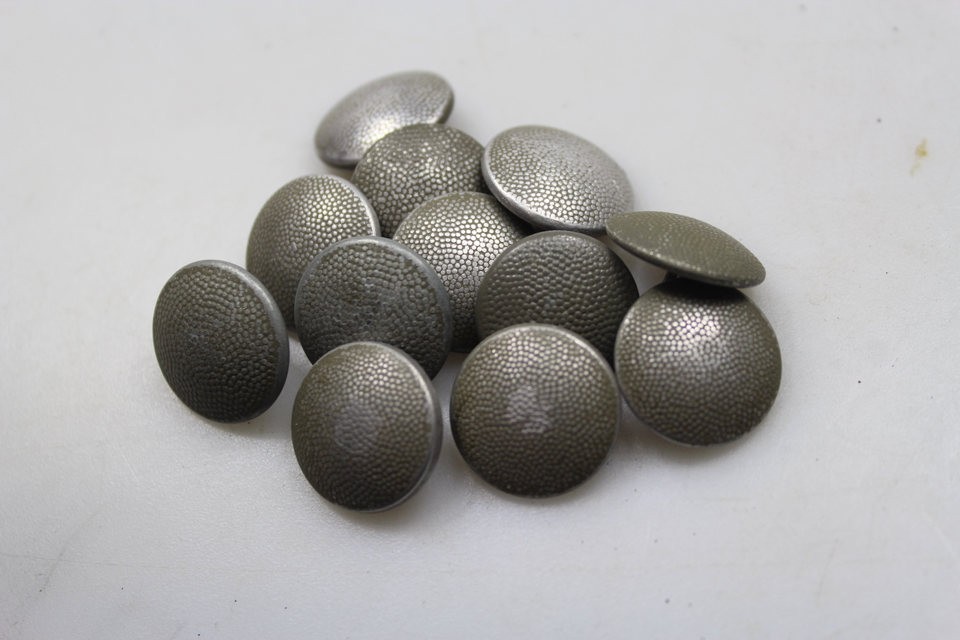 @ 12 bottoni per giacca da Ufficiale Wehrmacht, diametro 20 mm, presente ancora buona parte della colorazione feldgrau, anteriormente “matching”, anche se con produttori differenti. Usati, buono stato di conservazione.