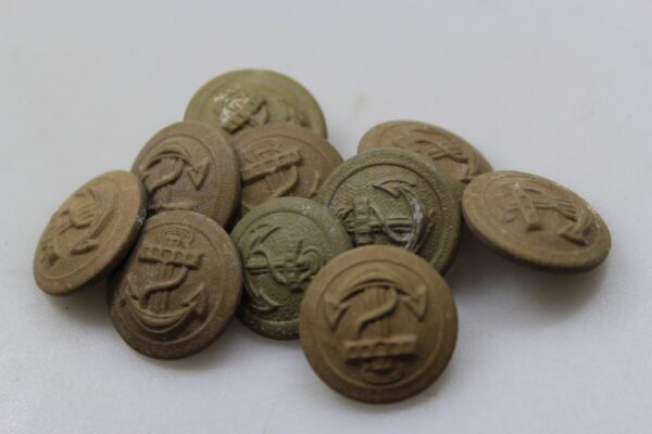 # 10 bottoni per giacca tropicale della Kriegsmarine, ideali anche per Kunstenartillerie. Usati, buono stato di conservazione, quasi “matching”.
