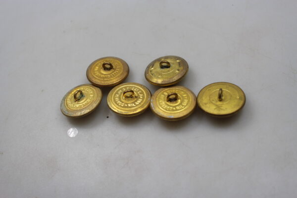 # 6 bottoni da Ufficiale del Commissariato Militare del Regio Esercito Italiano della Seconda Guerra Mondiale, misura 25 mm per cappotto. Buono stato di conservazione.