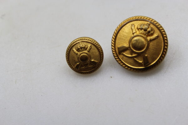 Set di otto bottoni, 4 piccoli e 4 medi, per giacca M.34 da Ufficiale di Fanteria del Regio Esercito Italiano nella Seconda Guerra Mondiale. Usati, buono stato di conservazione.