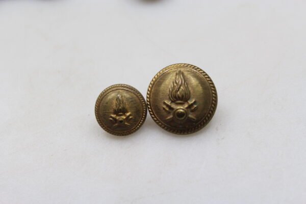 Set di bottoni , 4 da 15 mm e 4 da 20 mm, per giacca da Ufficiale dei Vigili del Fuoco degli anni 30’/40′. Usati, buono stato di conservazione.