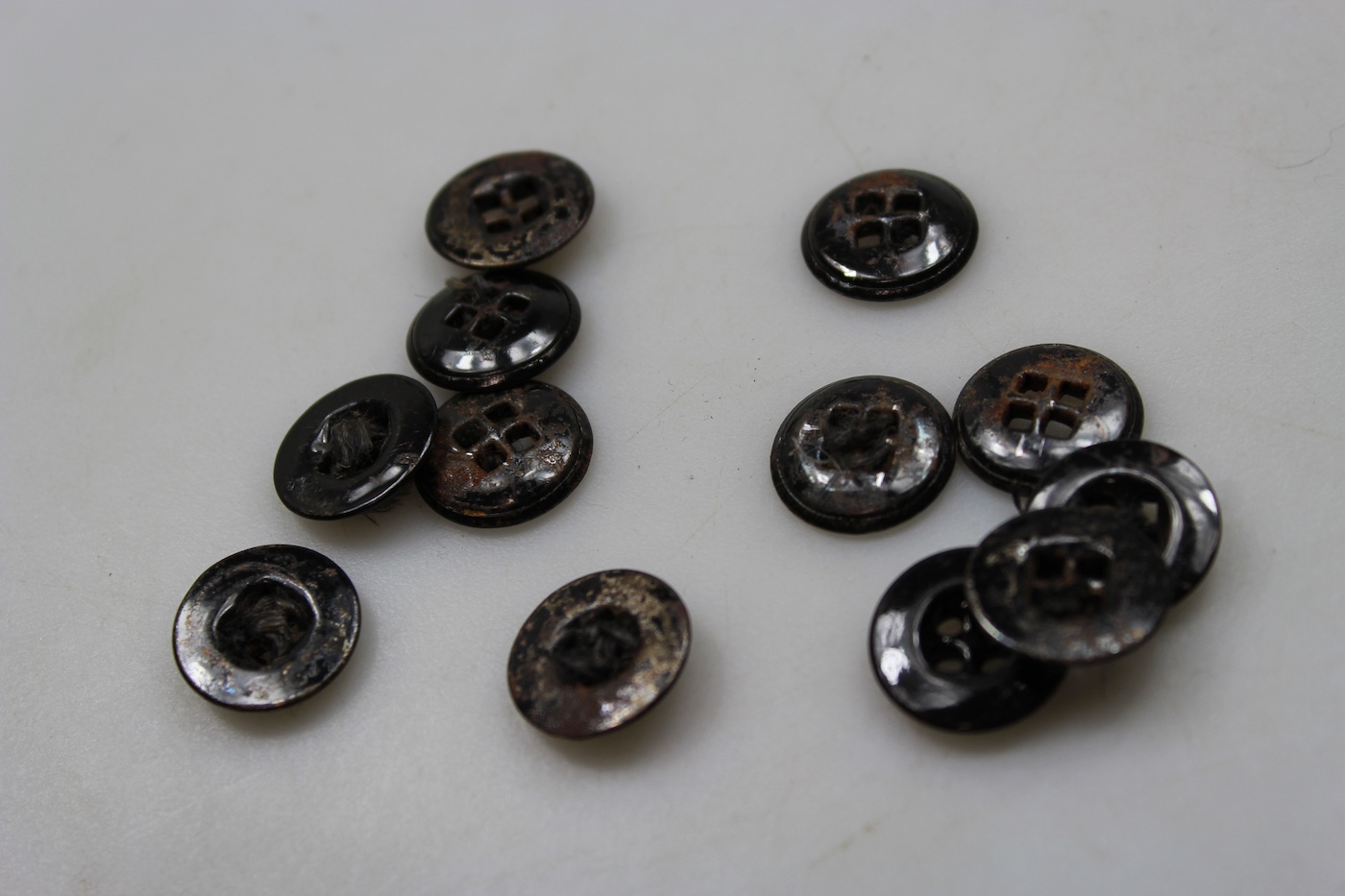 # 12 bottoni metallici da 14 mm, ideali per pantaloni Wehrmacht della Seconda Guerra Mondiale. Usati, buono stato di conservazione.