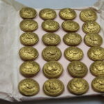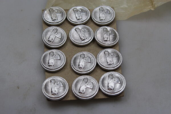 Risma da 12 bottoni PNF argentati da 20 mm, con fascio che guarda a destra, produttore Izar. Perfetto stato di conservazione.