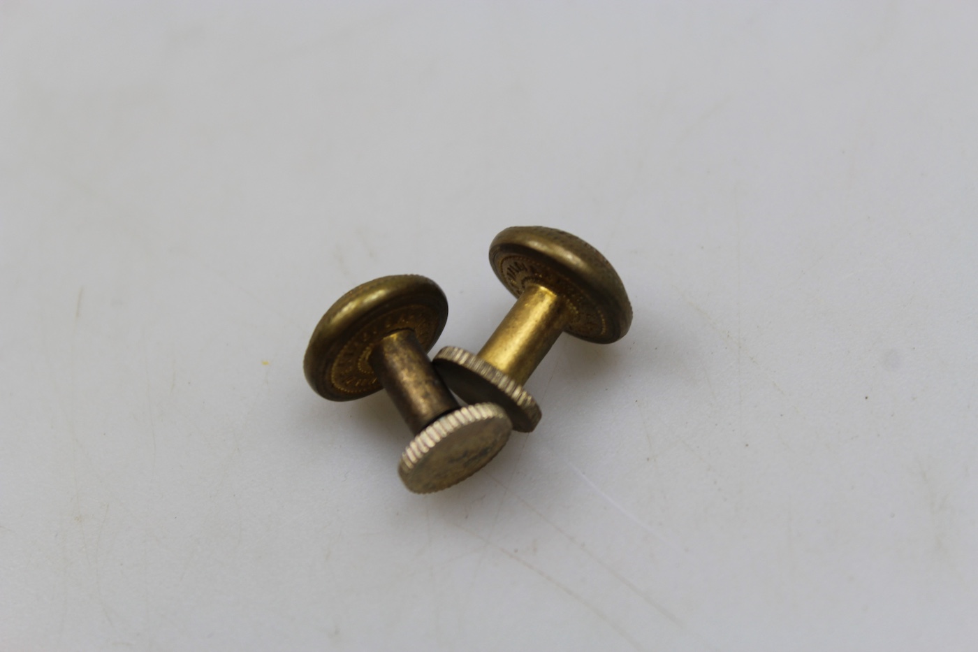 Coppia di bottoni a vite per spalline da Ufficiale del Commissariato Militare del Regio Esercito Italiano della Seconda Guerra Mondiale. Usati, buono stato di conservazione, bella patina.