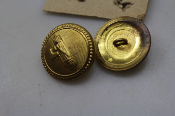 # 8 bottoni per cappotto, diametro 25 mm, da Ufficiale del PNF, 4 con fascio che guarda verso destra e quattro con fascio che guarda verso sinistra. Buono stato di conservazione.