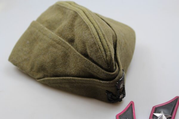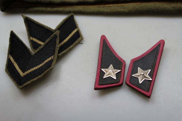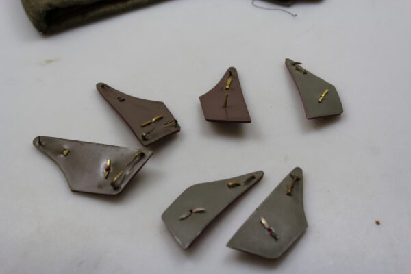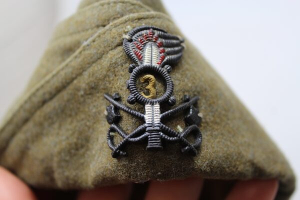 Interessante bustina da truppa Esercito Italiano degli anni 50′, con fregio del Genio Guastatori, marcata internamente con stoccaggio e data, inclusi gradi da Caporale e 3 coppie di mostrine del Genio. Buono stato di conservazione.