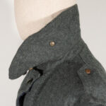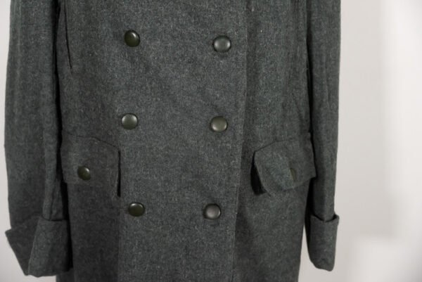 Cappotto M.40 da truppa del Regio Esercito Italiano nella Seconda Guerra Mondiale, fatto in panno “ortica” grigio/verde e fodera in cotone grigio, marcato con taglia e stoccaggio. Mai stato usato, molto buono lo stato di conservazione.