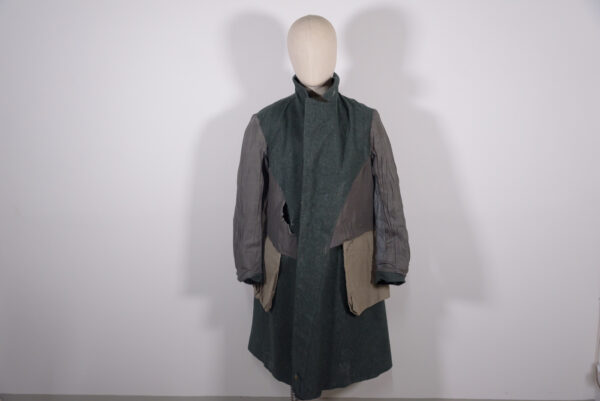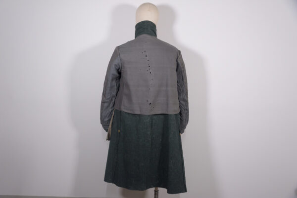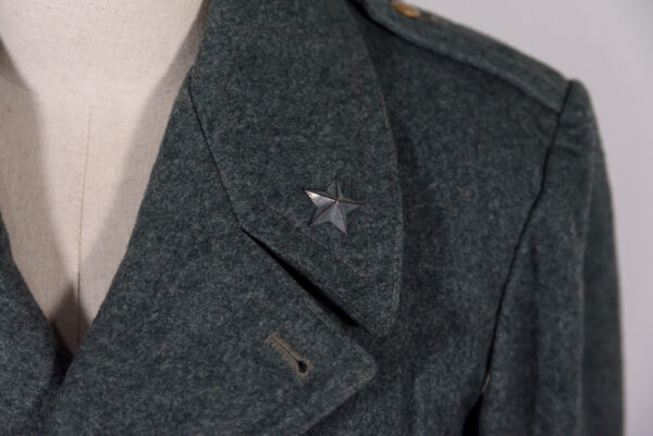 Cappotto truppa M.40 del Regio Esercito Italiano della Seconda Guerra Mondiale, fatto in panno grigio/verde e fodera spigata in cotone grigio pettorale e dorsale, in rayon grigio lucido nelle maniche. Completo di stellette metalliche. Usato, buono stato di conservazione, qualche piccolo problema nella fodera interna, vedi foto in dettaglio.