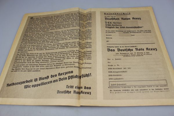 Interessante brochure con informazioni e format da compilare per l’adesione e l’arruolamento della DRK, Deutsche Rotes Kreuz. Perfetto stato di conservazione.