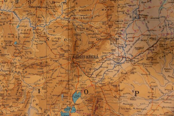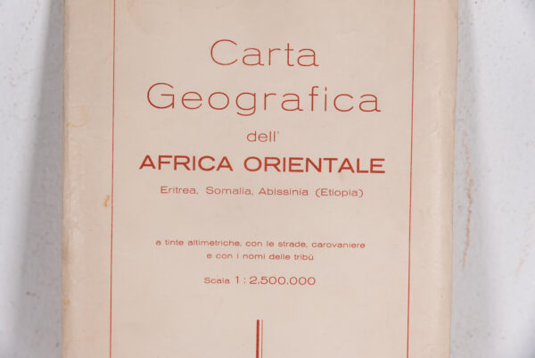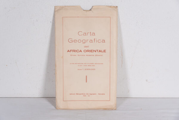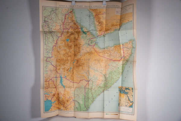 Interessante carta geografica dell’ Africa Orientale Italiana, compresa di folder. Buono stato di conservazione.