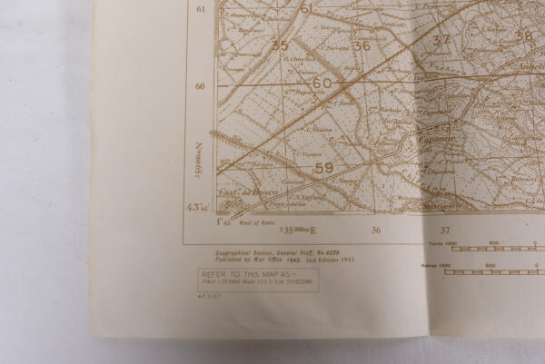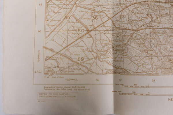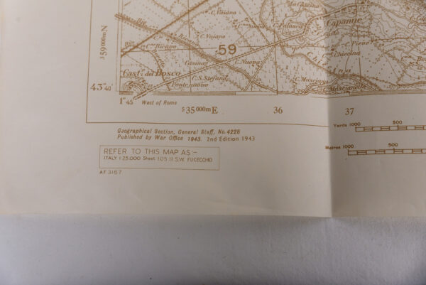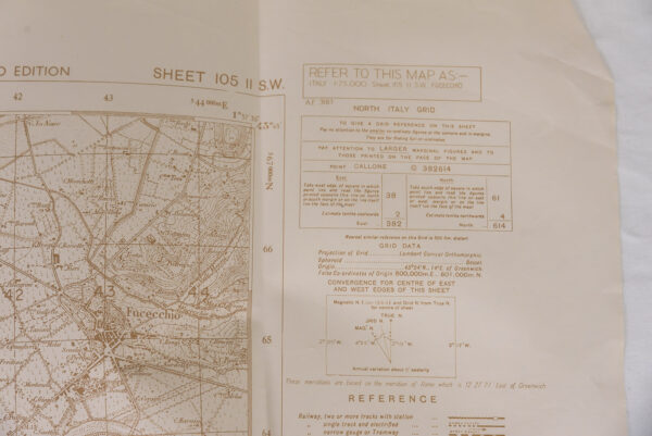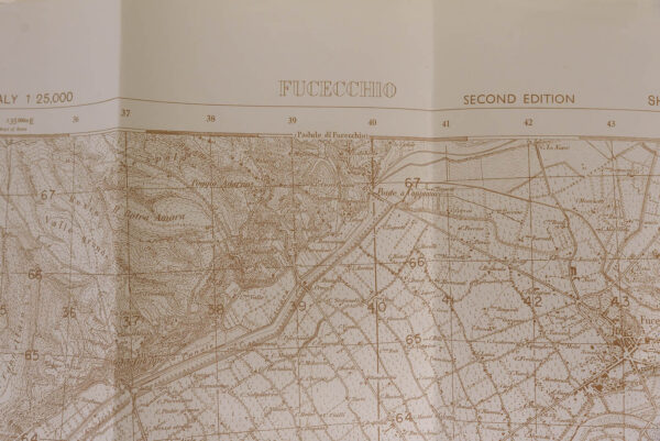 Carta topografica US Army della Seconda Guerra Mondiale della zona di Fucecchio in provincia di Firenze, pubblicata da War Office nel 1944. Buono stato di conservazione.