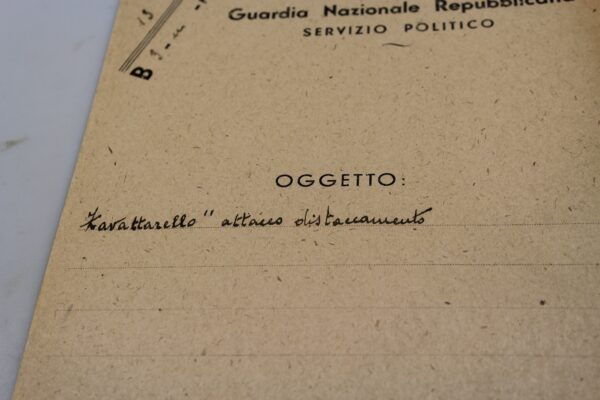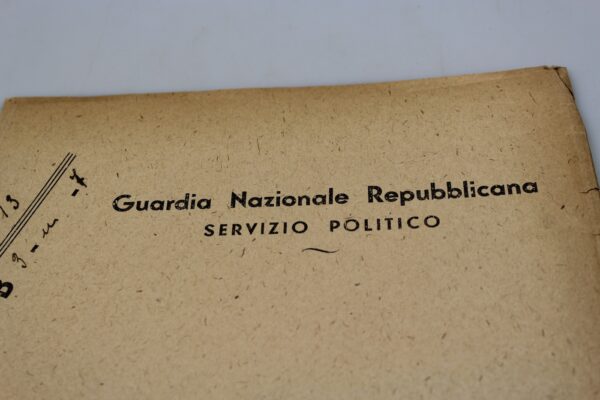 Cartella da ufficio per documentazione ( cm 32×23 ), intestata alla GNR, Guardia Nazionale Repubblicana. Usata, buono stato di conservazione.