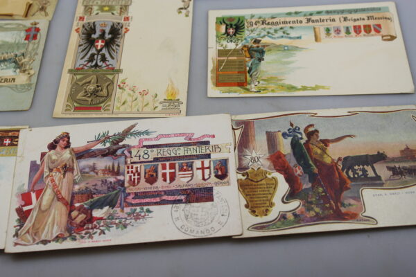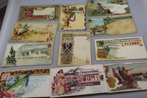# 11 Cartoline postali Reggimenti di Fanteria della Prima Guerra Mondiale., ( 94°,80°,6°,48°,62° due pezzi,27°,23°,45°,68° e (à ) Buono stato di conservazione.