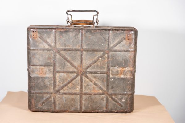 Cassa in metallo per Handgranate M.29, in colorazione feldgrau. Usata, buono stato di conservazione.