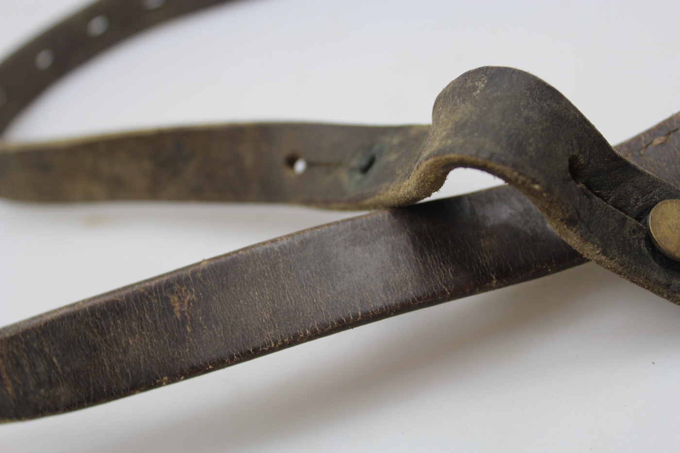 Cinghia in cuoio per moschetto 91 lungo del Regio Esercito Italiano. Usata, buono stato di conservazione.