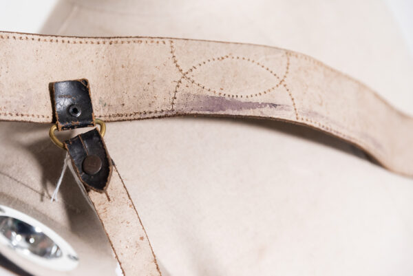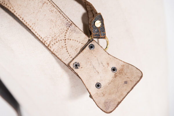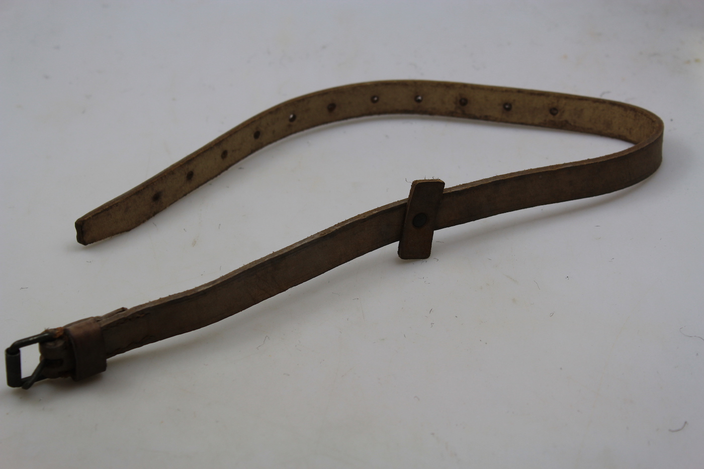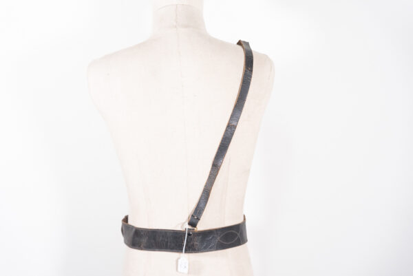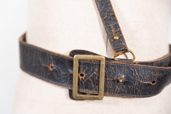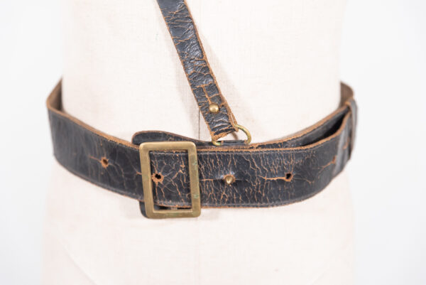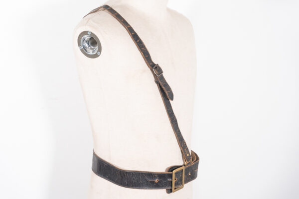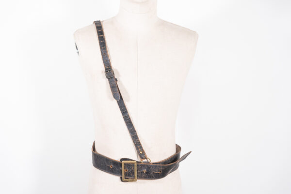 Cinturone “Sam Browne” fatto in cuoio nero, completo di spallaccio, usato da RRCC, MVSN e PNF. Usato, buono stato di conservazione.