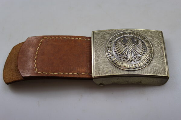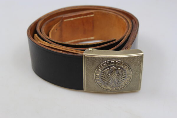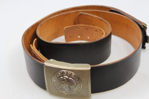 Ottimo cinturone da truppa Bundeswehr postbellico, completo di fibbia con patta, lunghezza cm 120. Poco usato, perfetto stato di conservazione.